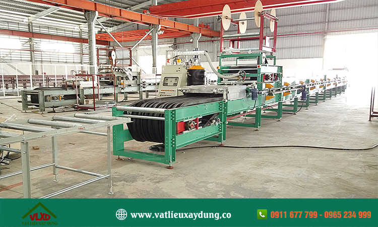 - Bước 4: Sau 3 quá trình sản xuất trên, ta sẽ thu được thành phẩm và dàn con lăn sẽ chuyển tôn xốp ra bên ngoài.