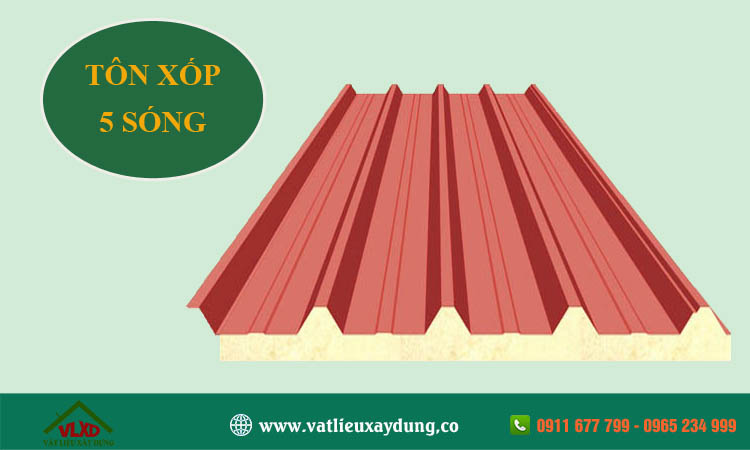 - Trọng lượng tôn 5 sóng: 265kg/m – 5.06kg/m
