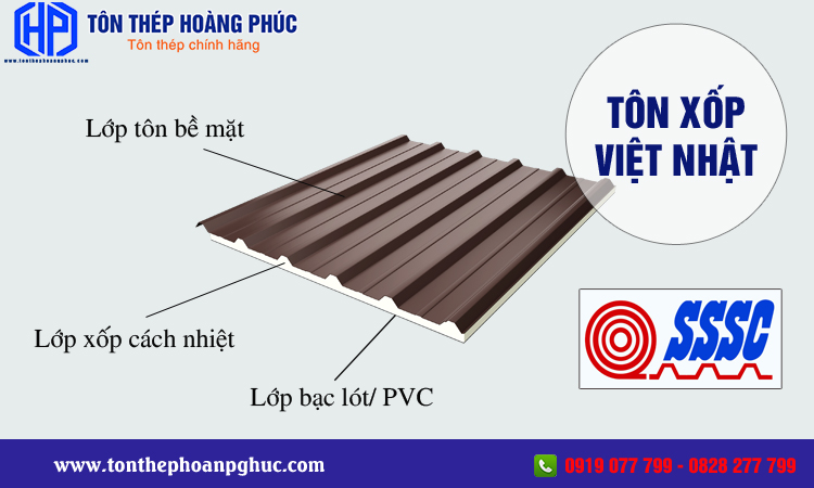 Tôn Thép Hoàng Phúc là công ty chuyên cung cấp đầy đủ các loại tôn thép uy tín, chất lượng tại Tp.HCM và các tỉnh thành lân cận, trong đó có dòng sản phẩm tôn xốp của thương hiệu Tôn Việt Nhật với nhiều chủng loại, mẫu mã, giúp khách hàng dễ dàng lựa chọn các sản phẩm phù hợp với nhu cầu. Để có được báo giá tôn thép mới nhất, quý khách vui lòng liên hệ ngay với chúng tôi qua hotline: 0919.077.799 – 0828.277.799