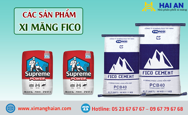 Các dòng sản phẩm xi măng Fico gồm: Supreme Power, xi măng Fico PCB40, xi măng xá PCB 50, Xi măng Fico PBC30